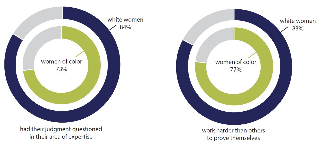 Notably, women of color are significantly more likely to face assumptions that they are more junior or have less experience than they do and to have someone else take credit for their ideas. In essence, women are not able to simply do their jobs. They must spend extra time and effort justifying their existence and navigating microaggressions and biases, which add up over time and contribute to talent attrition.